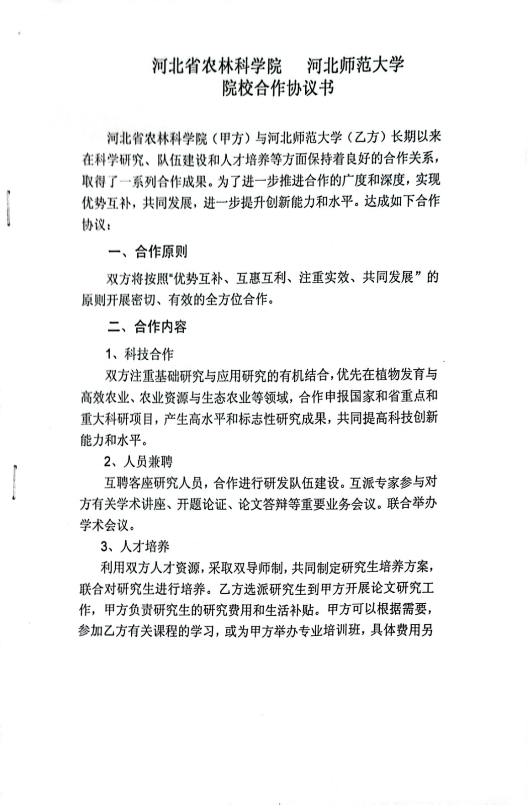 河北省农林科黄色电影 黄色电影 院校合作协议书