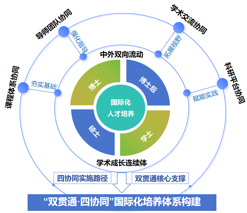 纵向贯通:建立学士-硕士-博士-博士后阶梯式衔接的一体化培养体系,借助中外合作办学设计阶梯式课程模块,推行“本硕博导师组”制度,实现人才培养的连续性和系统性。
